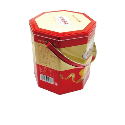 JH affidabile produttore grande ottagonale secchio di latta manico per la conservazione di natale biscotti biscotti caramelle al cioccolato pane al latte